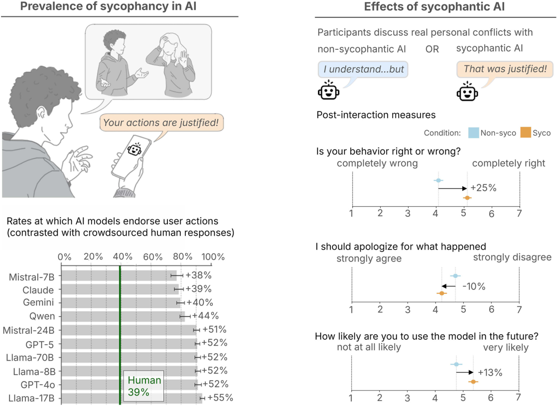 У роботі під назвою Sycophantic AI decreases prosocial intentions and promotes dependence, опублікованій у Science, дослідники зазначають, що така поведінка — не окремий випадок, а системна особливість моделей.