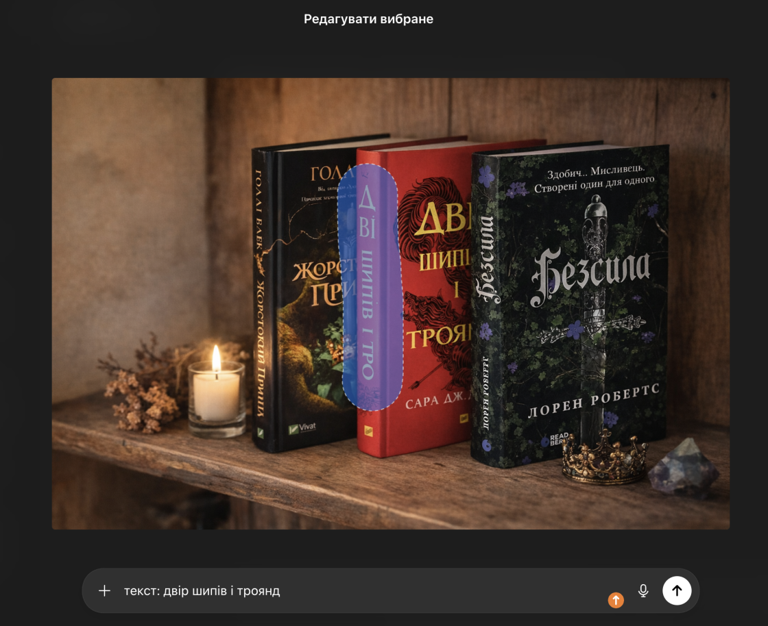 Редагування вже згенерованого тексту слід розглядати як крайній варіант. Інпейнтинг часто виглядає переконливо на рівні фону, але погано відтворює чіткі форми літер. На практиці швидше перегенерувати зображення або винести текст в окремий шар, ніж намагатися виправити напис усередині картинки.