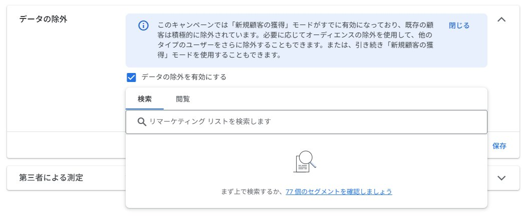 Новий пункт з’явився в налаштуваннях PMax вище розділу Third-party measurement. За його допомогою можна виключати списки ремаркетингу або відвідувачів конкретних сторінок — наприклад, постійних клієнтів чи тих, хто вже виконав конверсію.