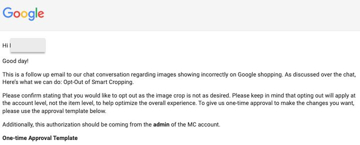 У листі компанія повідомила, що наразі немає можливості самостійно вимкнути Smart Cropping через інтерфейс Merchant Center. Щоб відключити функцію, потрібно звернутися до служби підтримки Google і зробити запит вручну.