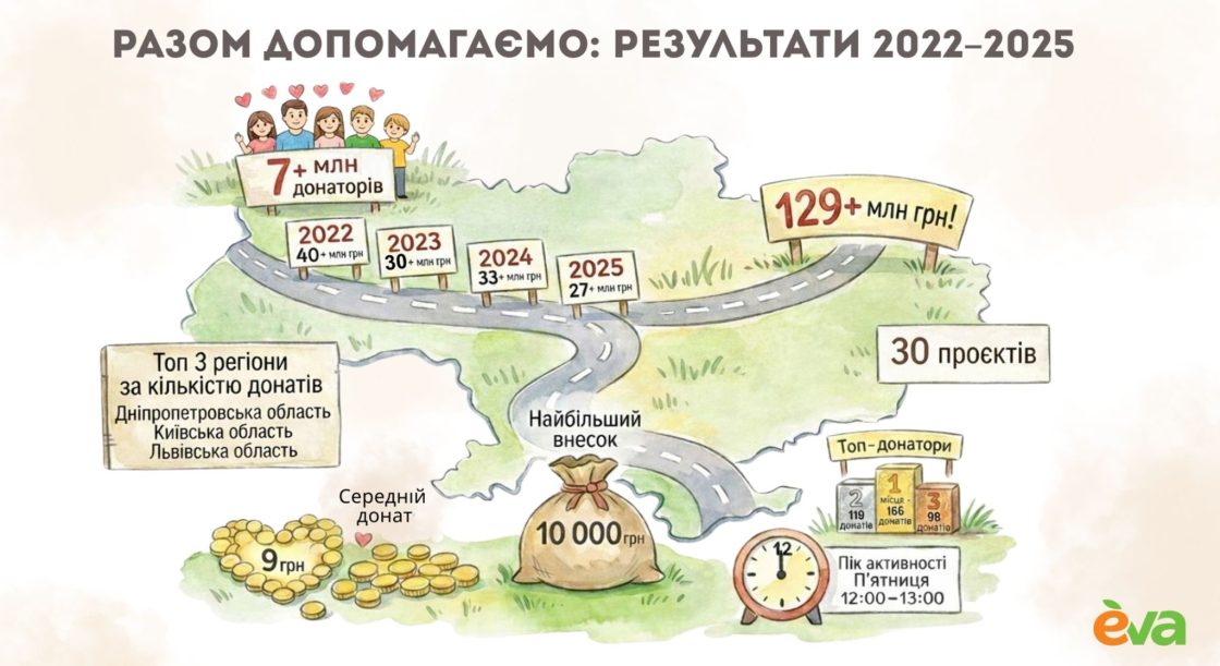 Клієнти EVA задонатили понад 129 млн грн на благодійні ініціативи з 2022 року