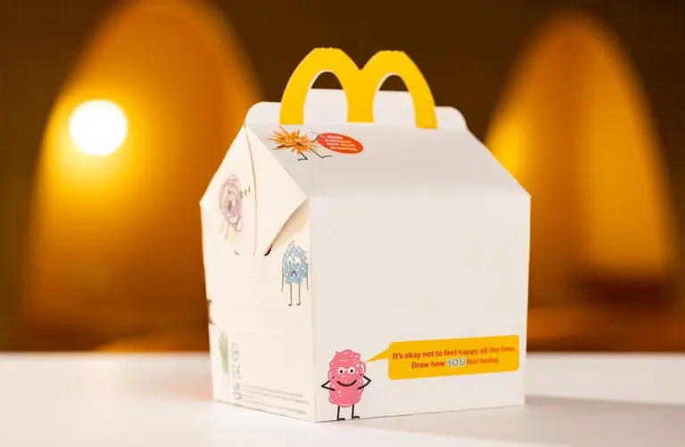 Компанія McDonald’s змінила колір коробки Happy Meal в Британії та Ірландії, щоб діти могли малювати на ній і висловлювати емоції. У межах обмеженої серії Draw How You Feel Meal («Намалюй, як ти себе почуваєш») діти можуть прикрашати коробку за допомогою олівців, що додаються до меню.