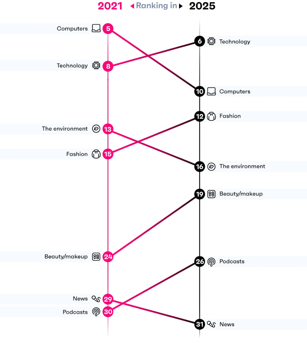 Попри те, що технології та ґаджети — це лідери з тем зацікавлення, покоління Альфа все частіше виходить в офлайн, цікавляться настільними іграми та прогулянками. Також представники покоління Альфа вважають ПК та ноутбуки застарілими, оскільки виросли зі смартфонами та планшетами в руках.