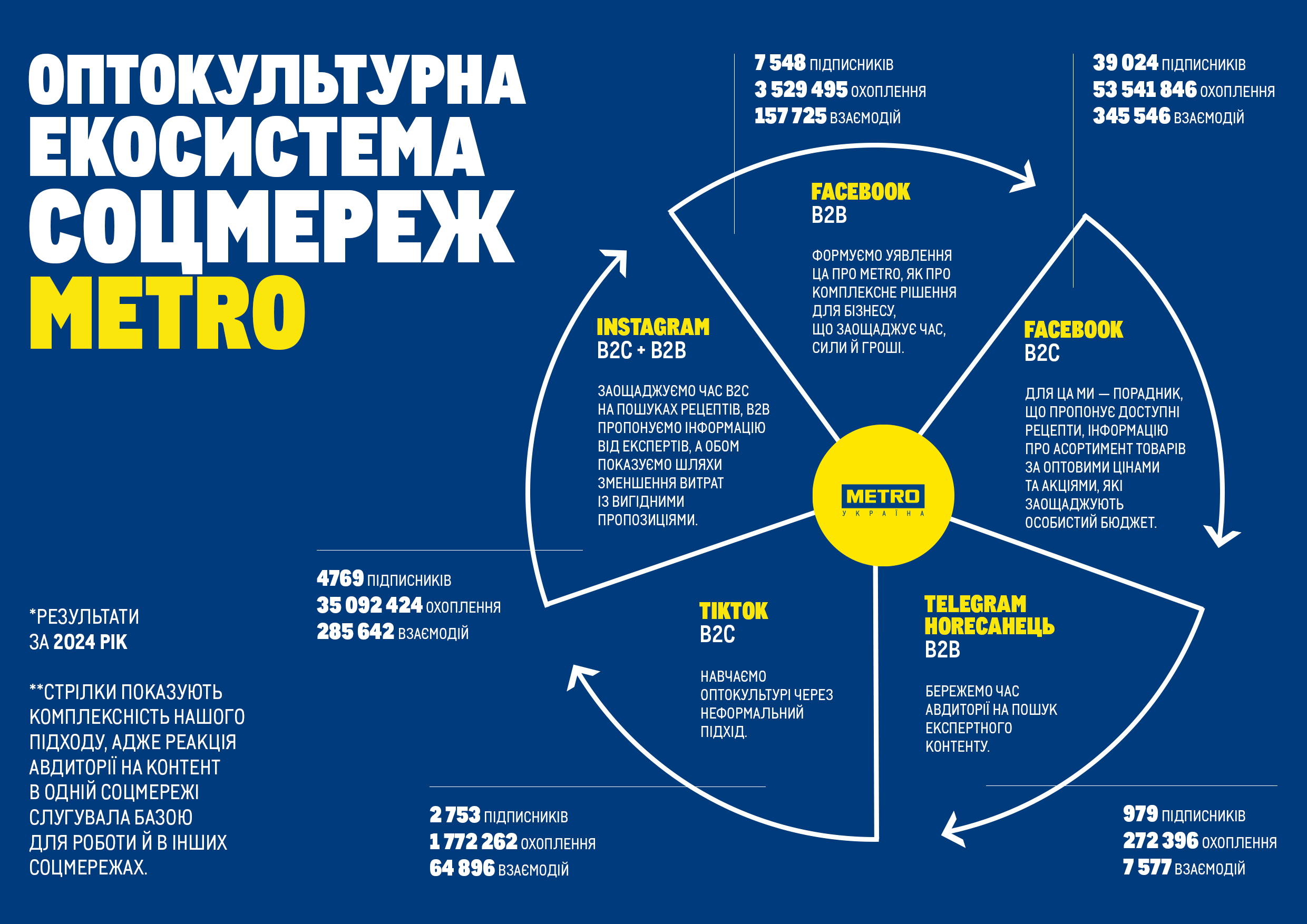 Для ком’юніті METRO — це регулярні експертні рубрики, контент, на який авдиторія чекає, бо знає, що його регулярно оновлюють. Наприклад, рубрика зі сезонними стравами, що допомагає закладам оновлювати меню залежно від пори року, та щомісячні дайджести у Telegram.