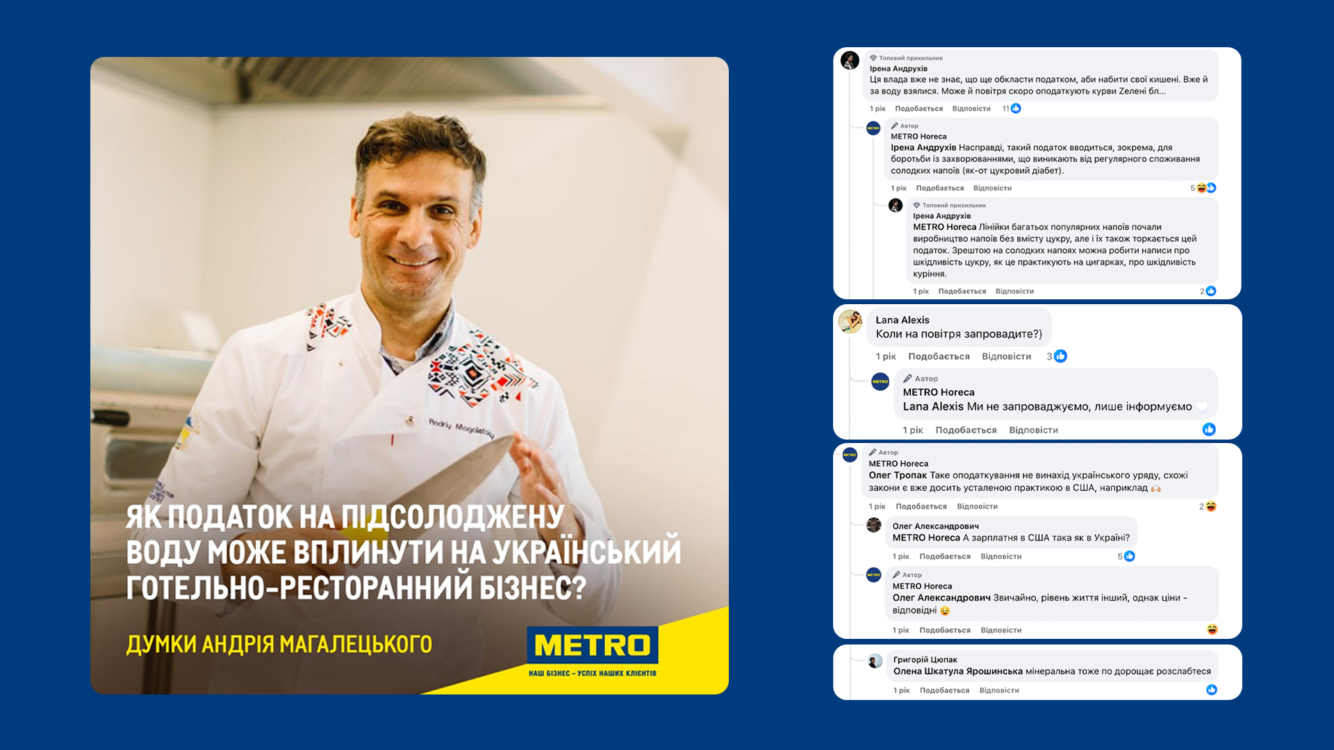 Наприклад, новина про податок на підсолоджену воду у 2024 році стала приводом для коментаря ресторатора Андрія Магалецького, пояснення суть змін і рекомендації для бізнесу. Це спрацювало: навіть мовчазні підписники включилися в обговорення, а органічний ERR перевищив середній показник удвічі.