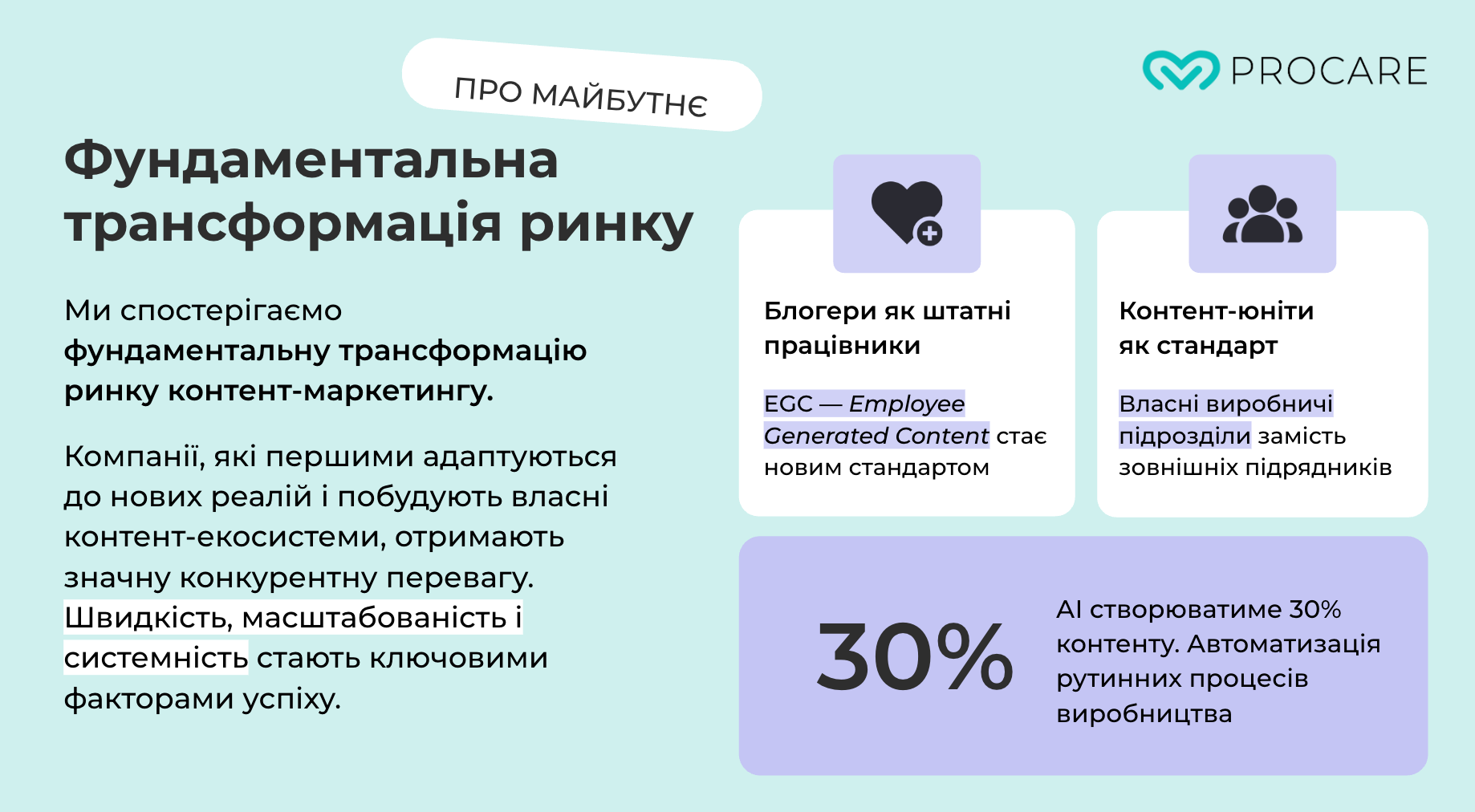 Юлія вважає, що ринок контент-маркетингу переживає фундаментальну трансформацію. Прогнози команди ProCare: