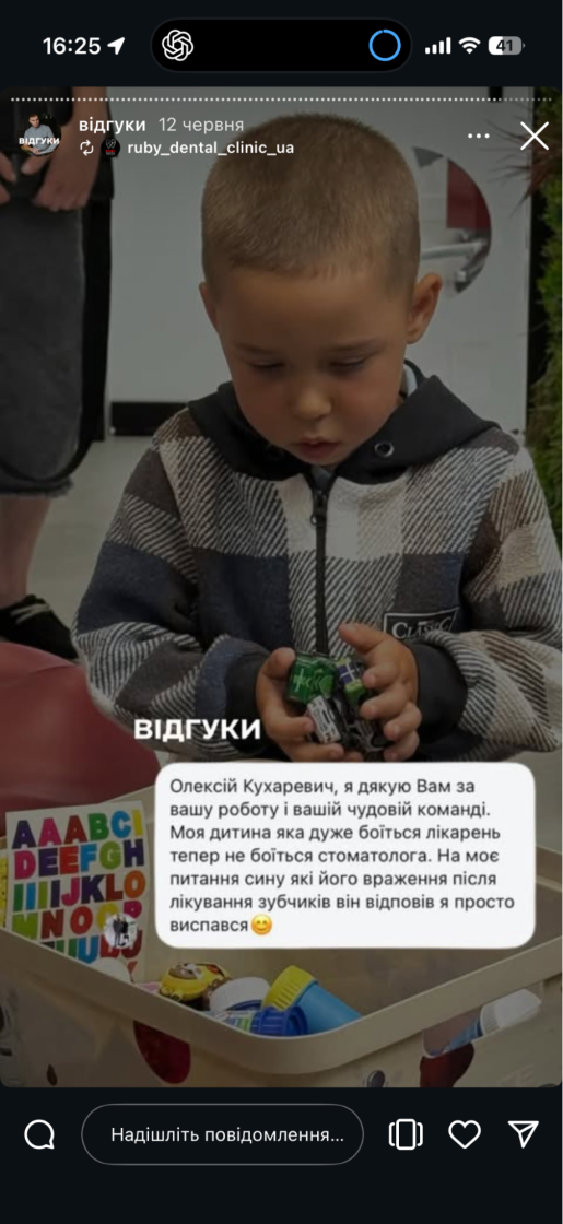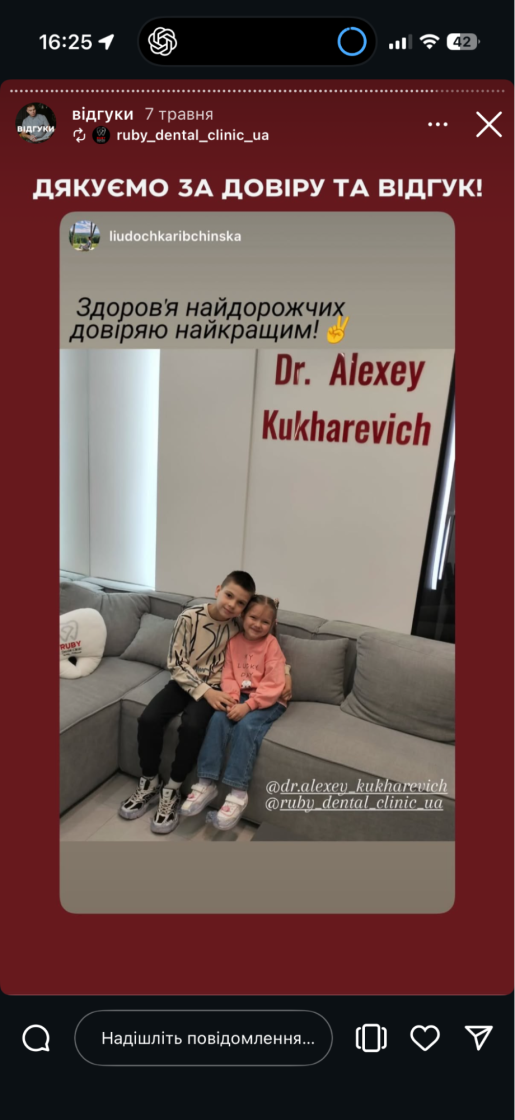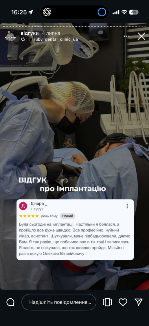 Найкращі відгуки стають частиною контенту — клініки роблять скриншоти з Google- Facebook-відгуків і постять їх у соцмережах, додаючи вдячність від себе.