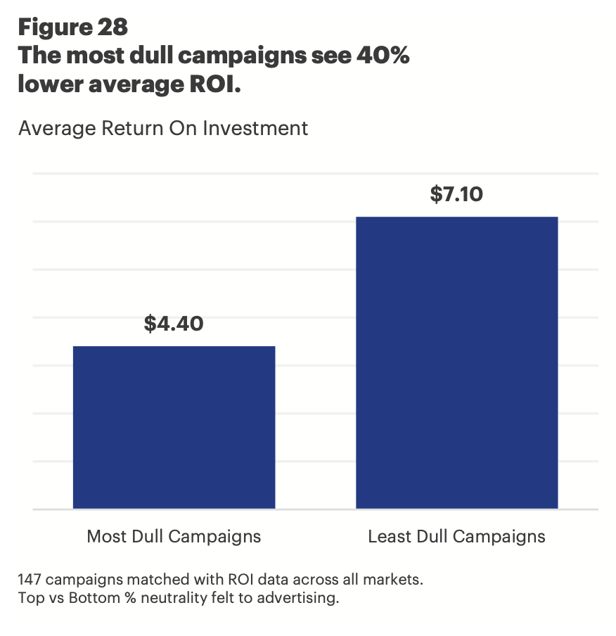 Але далі вони показують обмеження: бюджет не пояснює, чому частина кампаній перетворює витрати на сильні результати, а частина — ні. На цьому місці розділ переходить до ролі distinctiveness і емоції.