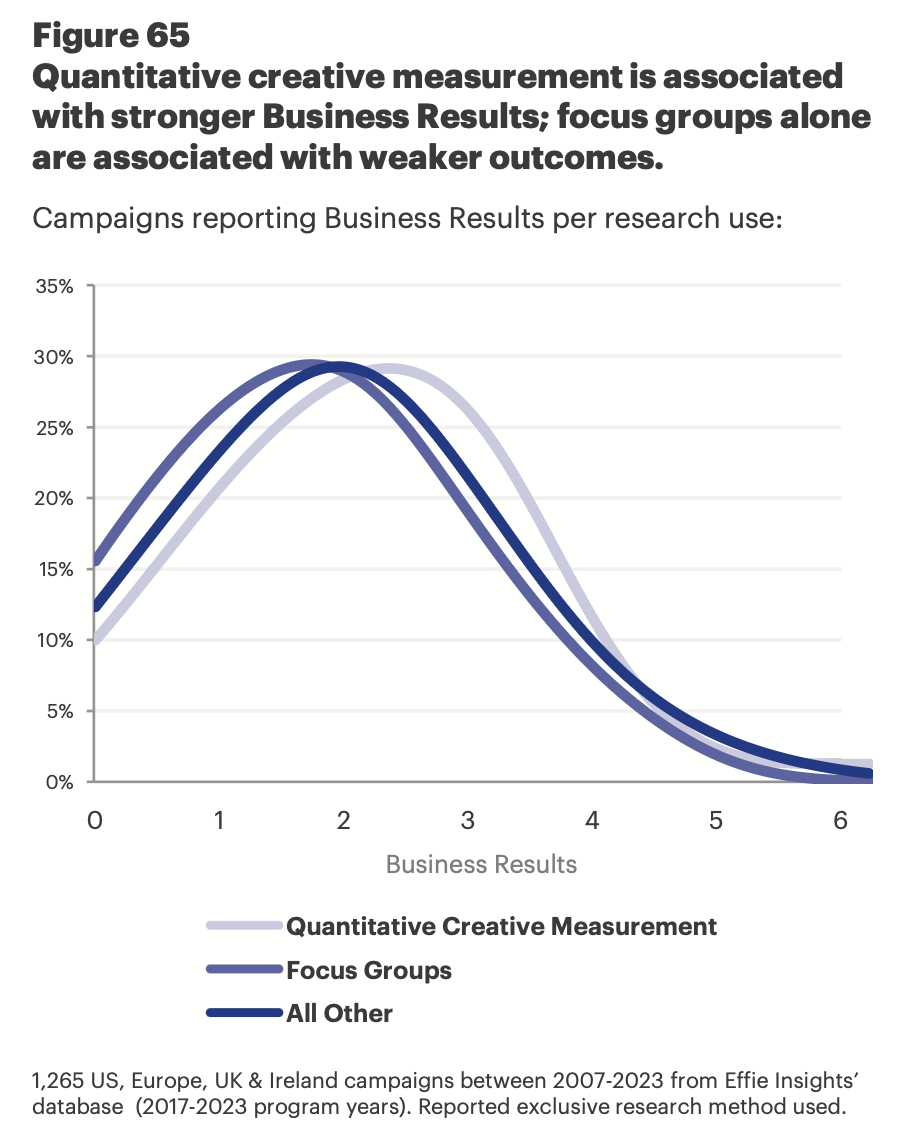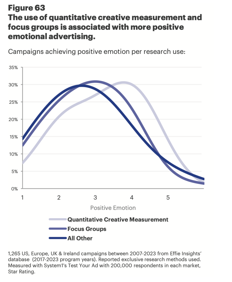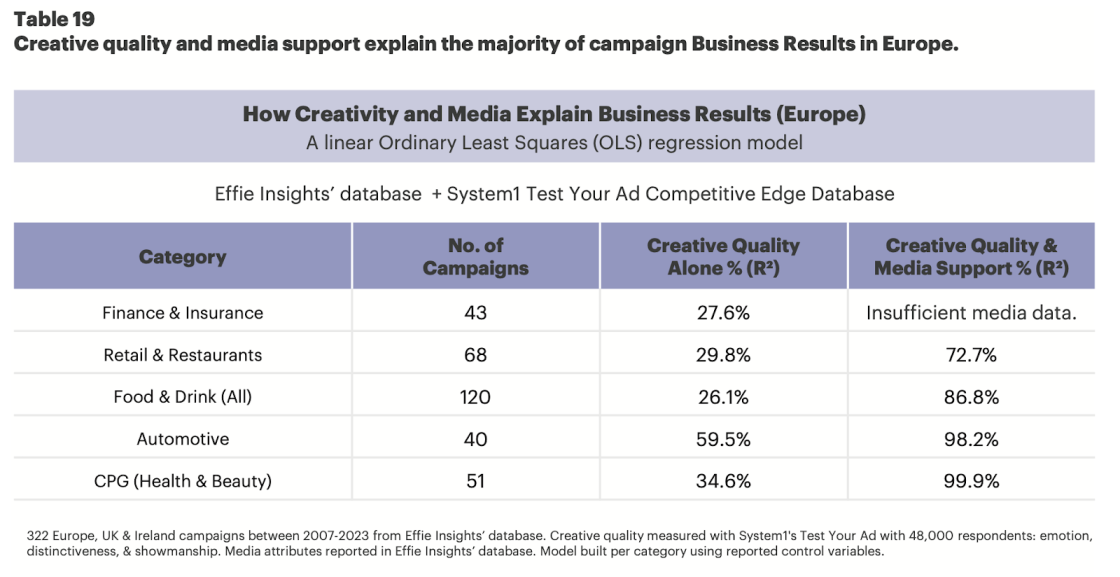 У базі Effie є кампанії з великими витратами без сильного ефекту і кампанії з помірними витратами з непропорційно високими результатами. Різницю допомагає пояснити креативна якість у поєднанні з медіапідтримкою.