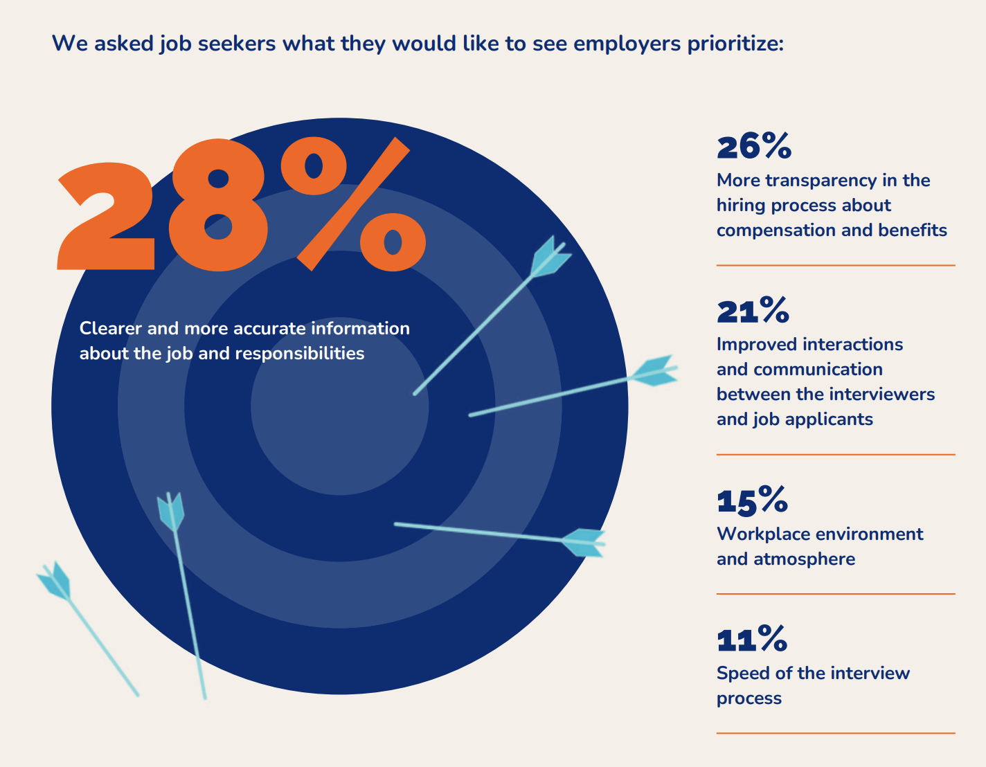 - 28% — хочуть отримувати чіткішу й точнішу інформацію про вакансію та обов’язки;